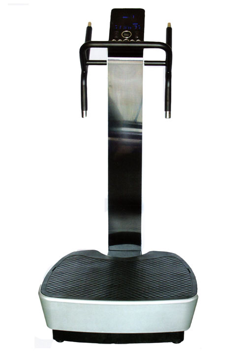 • Estructura: Metálica de alta resistencia, plataforma y barras laterales en goma, manubrio y soporte vertical en aluminio. Trabaja con bobina magnética. Plataforma emplea método de vibración vertical de frecuencia ultra baja (sistema STT).