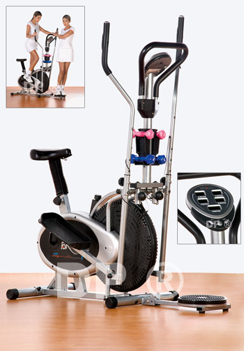 Los movimientos de la bicicleta elíptica reproducen los desplazamientos de brazos y piernas durante la marcha o carrera pero sin el impacto a las articulaciones, además de facilitar la tonificación de piernas y glúteos.